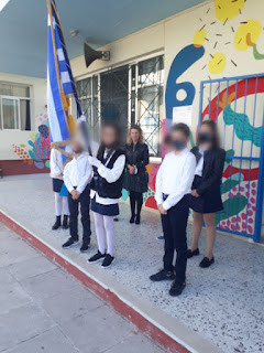 Ακολουθούν φωτογραφίες από την παράδοση της σημαίας στους μαθητές της ΣΤ΄2 τάξης και παρέλασης των παιδιών που αρίστευσαν στο προαύλιο του σχολείου μας. Με τα χειροκροτήματα των συμμαθητών τους και των δασκάλων τους, οι 6 μαθητές μας, ένιωσαν περήφανοι και ξεχωριστοί, συνοδεύοντας τη γαλανόλευκη.